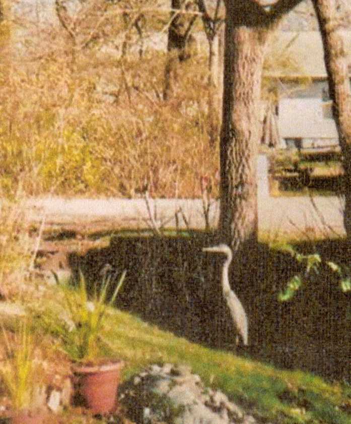 Is this bird an egret or Great Blue Heron?(It's a Great Blue Heron) When questioned, it failed to respond. One eye stared at me as I snapped this shot from ten yards away. Visited during November, 2009.