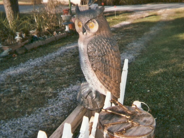 Think that this sculpture in my yard is a "Great Horned" owl. They're especially active in the woodlands of Western Kentucky after darkness. Part of my youth spent near the Great Okefenokee Swamp provided for me the experience of enjoying the sounds made by the Earth's nocturnal creatures. There were also the "chuck-wills-widow" and a "whip-poor-will." Bear would come to the window of my bedroom and stare as I was drifting into sleep. I wouldn't trade anything for those experiences. That's one of the paths "least chosen by man."(My father, Rummage Fulks chose that route.) Was that verse written by Someset Mohon? I'll soon learn.