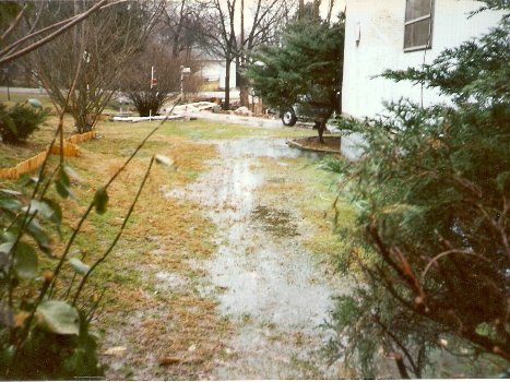 Heavy rains and runoff from a neignbors' gutter were problems that were encountered here during the first summer of 1997. Considerable hand-digging was required, but I've been able to alleviate most of the excess water accumulation by