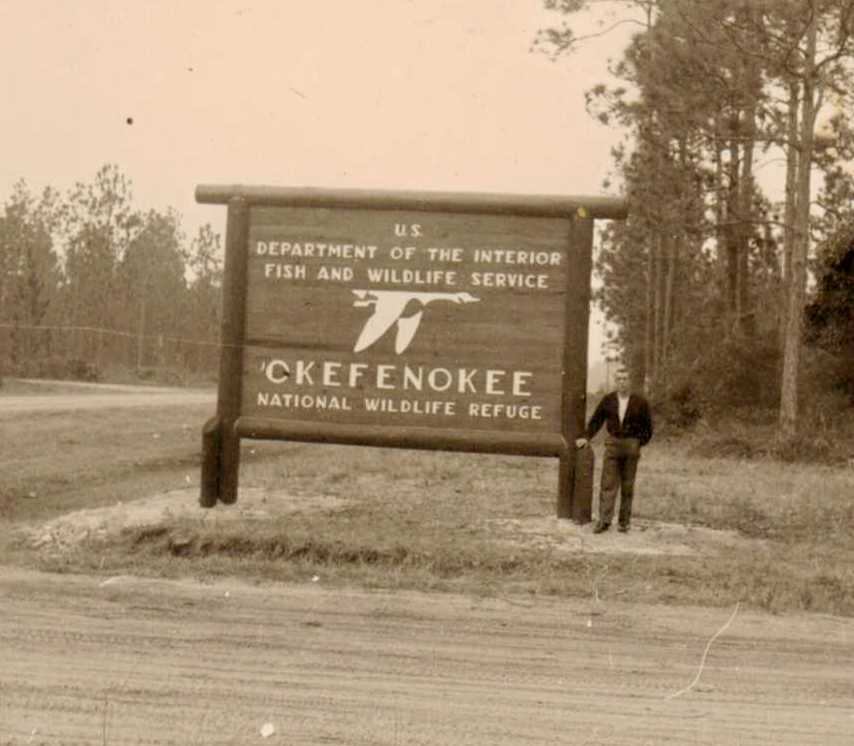 Charlton County Highschool student, there were few chores to perform other than schoolwork. Using much of my free time there at Camp Cornelia for loafing, I enjoyed solo excursions into wilderness areas; made necessary by being alone. There was no effort at farming for me, and part of choosing not to enter into agriculture were decisions made by my father. Watching other things grow, I was quite happy that there was no land to till. Being a child laborer during his ealier life, Dad Fulks was determined to find an easier way to earn his livelihood. That he did. There at the Okefenokee Wildlife Refuge were three refuge aids. Taking care of most work were Brantley Gay, Thomas Chesser, and R.I. Fulks. They'd sign-in at the Camp Cornelia headquarters building at precisely 8 A.M. and exit at 5:00 P.M. Those three refuge aide received work orders from the refuge manager in Waycross, Georgia. Often there was little work for the three to perform.