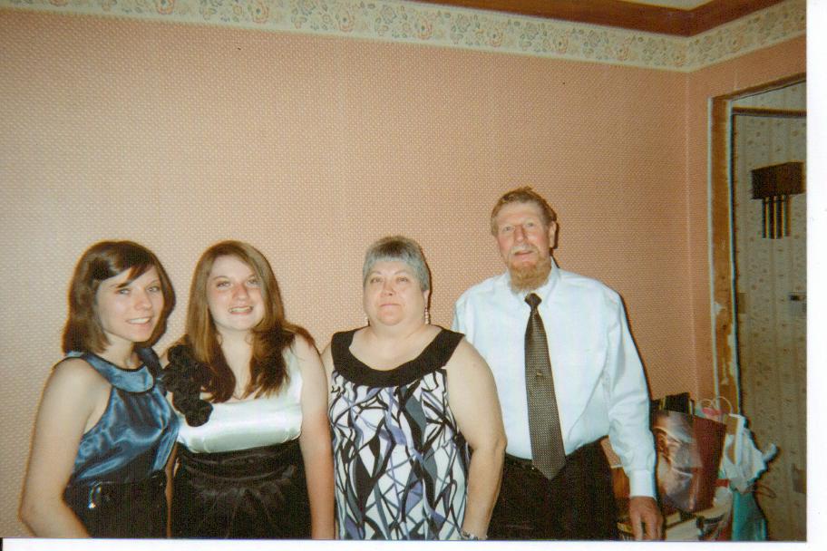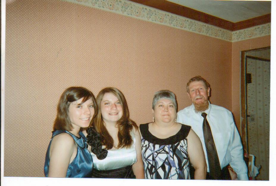 A second camera shot taken by George Harold Fulks, their uncle, of Smantha, Cameron, Cathy Rogers Hallman, and their father and husband, Frank Hallman on July 11, 2011 on the occasion of the furneral of Martha Dorcas Fulks Hallman.
