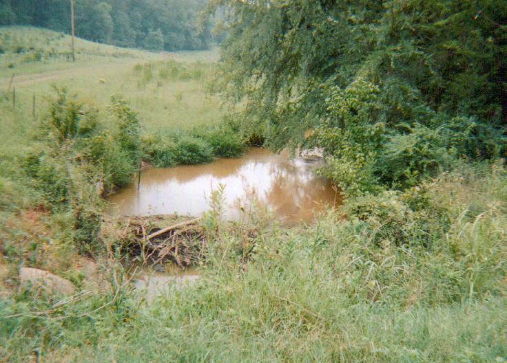 four miles to his rural residence. I, George, snapped this shot of what appears to be a beaver dam. Muddy water and missing trees lend evidence to a beaver dam theory.